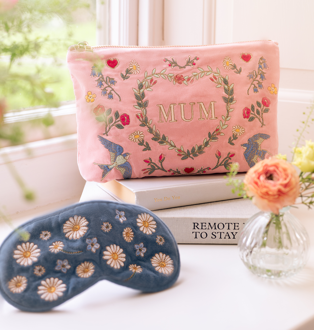 This personalised pouch promises to add a touch of starry enchantment to your home and travels. With delicate gold stars and moons embroidered onto a rich velvet fabric, this new design also includes your loved one’s initial in bold cream lettering.