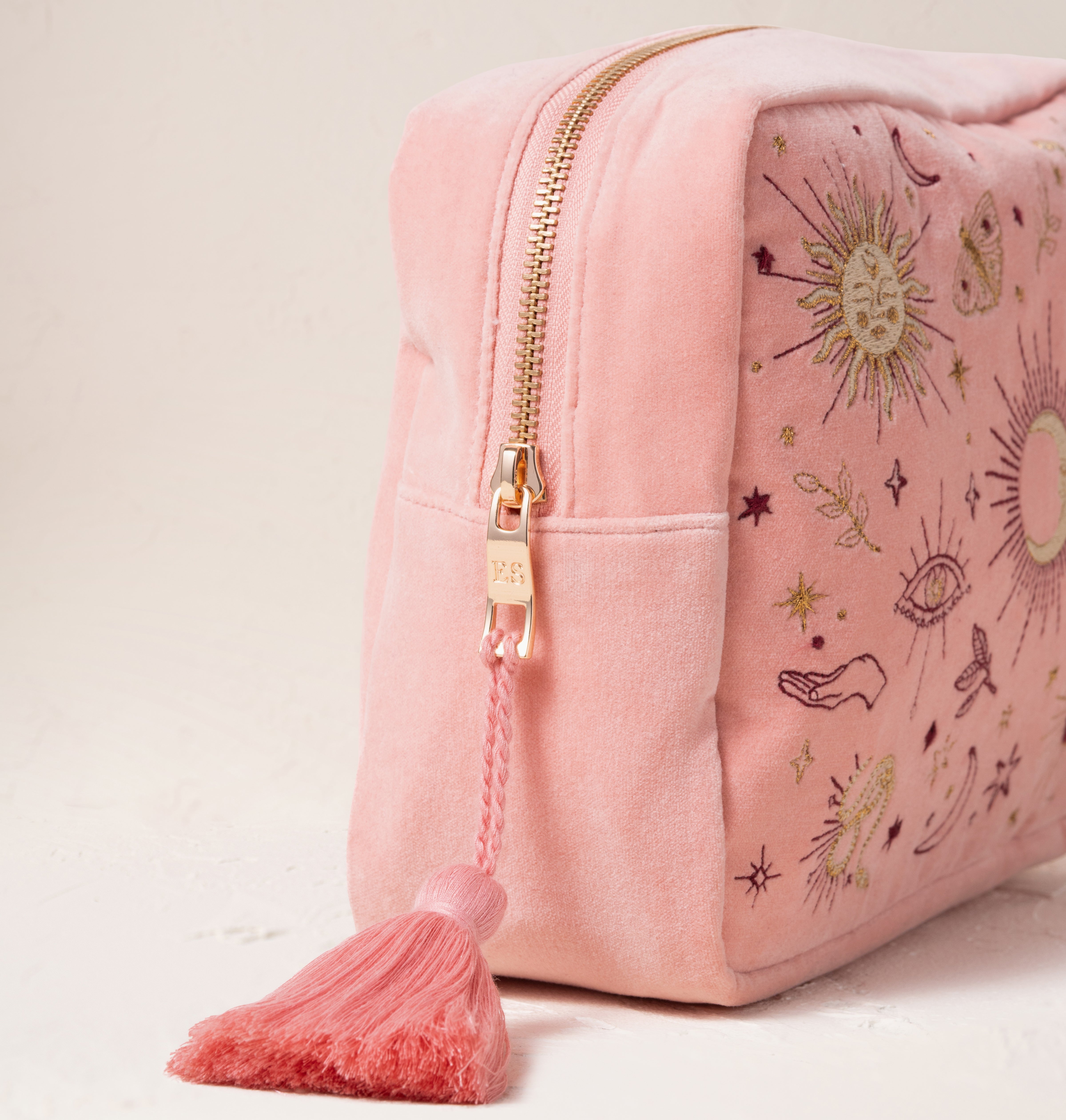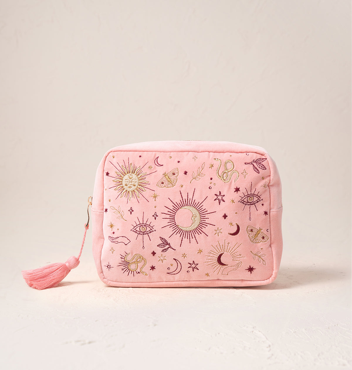 Say goodbye to messy mishaps, and hello to a beautifully organised home for your makeup and skincare, wherever you wander. Adorned with charmed talismans, golden snakes and mystical eyes, carry a design threaded with love, luck and magic.