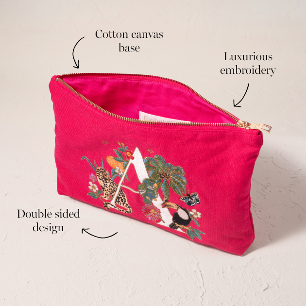 Designed to make your life a little more organised and a lot more luxurious, this timeless Everyday Pouch features delicate embroidery on soft, durable bases. Ideally sized, it is perfect for storing your daily essentials, fitting in your handbag, or using as a clutch.