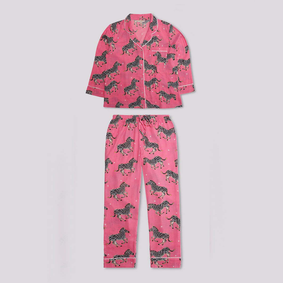Drift off into dreams of the wild. Our most luxurious pair yet, we’ve made these pyjamas from the softest 100% cotton sateen, with a classic button-down shirt and long trousers for a relaxed fit.