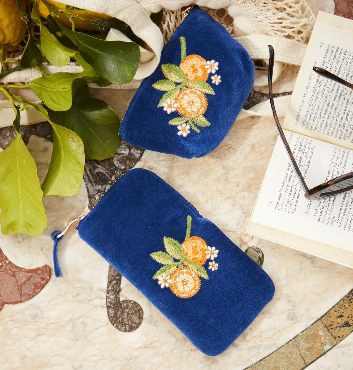 Inspired by sicilian citrus groves and fields of fancy in provence, this fresh design captures the bold colours of summer. Embroidered with delicate orange blossom motifs, these accessories promise to inject some Mediterranean cool into your everyday.