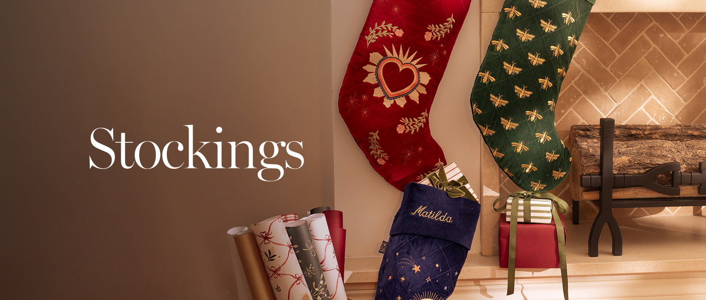Crafted from sumptuous velvet, adorned with our most-loved motifs and embroidered with their initials (or yours) for an extra-special touch. Our velvet stockings make the most enchanting gift, made to be treasured from this Christmas to next.