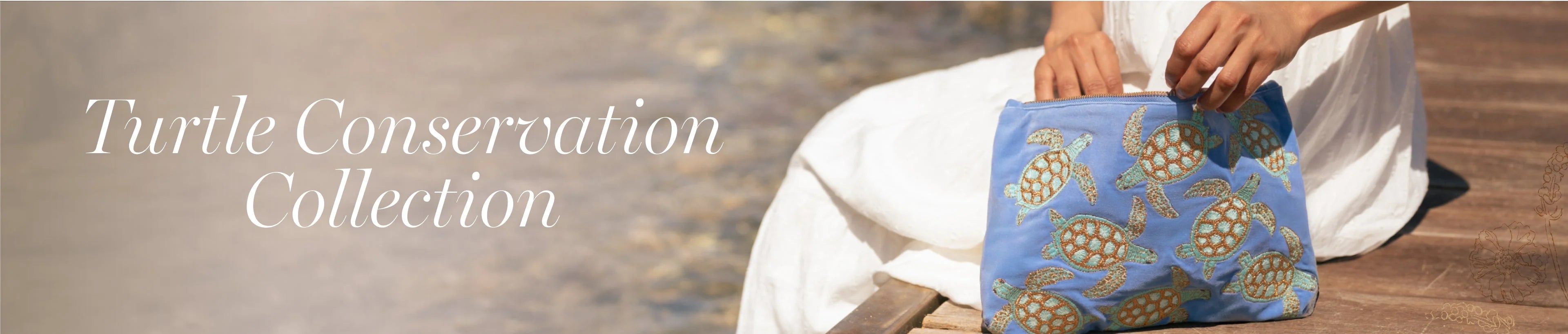 Protecting endangered turtles with every piece sold, our Turtle Conservation Collection weaves purpose into every thread. Embroidered with turtles and hatchlings, each accessory supports Blue Marine Foundation's vital efforts to protect this endangered species.