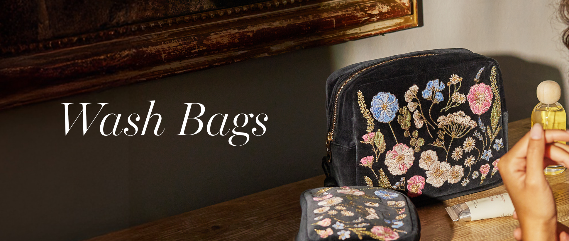 Keep your beauty essentials safe and sitting pretty at home or away with our embroidered Wash Bags. Complete with handy inner pockets, waterproof lining and intricate designs, they're a must-have for beauty lovers and travellers alike.