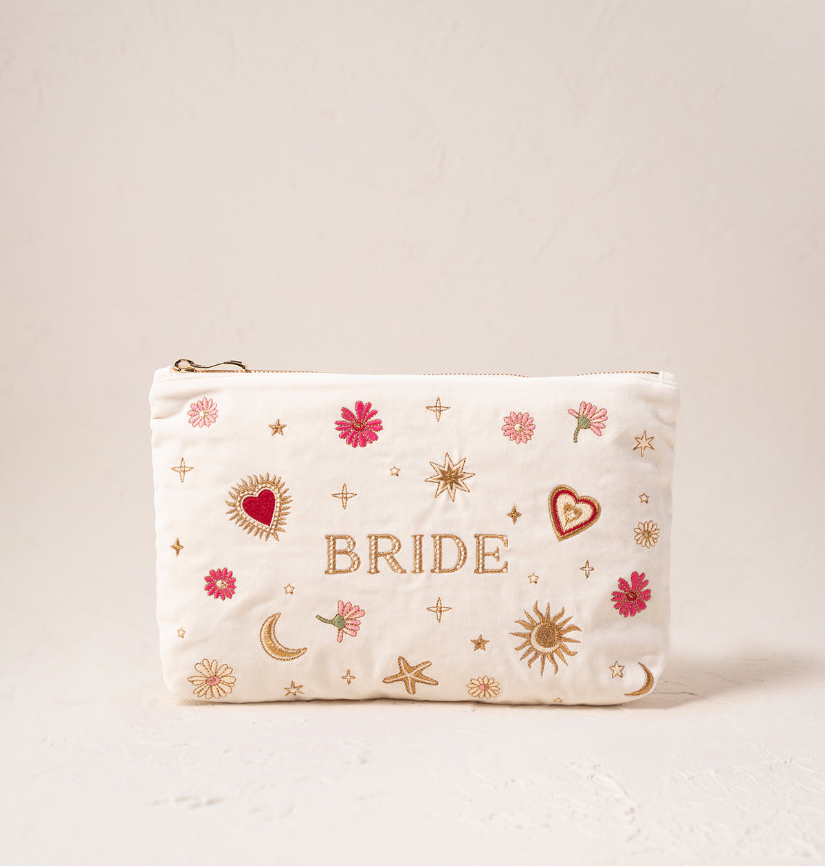 Scattered with golden love charms, hearts and suns this pouch is perfect for the Bride with a love of a Bohemian touch. Whether for a town hall ceremony, after party or simply to store her essentials, treat her to a treasured gift to celebrate her day, in her style.