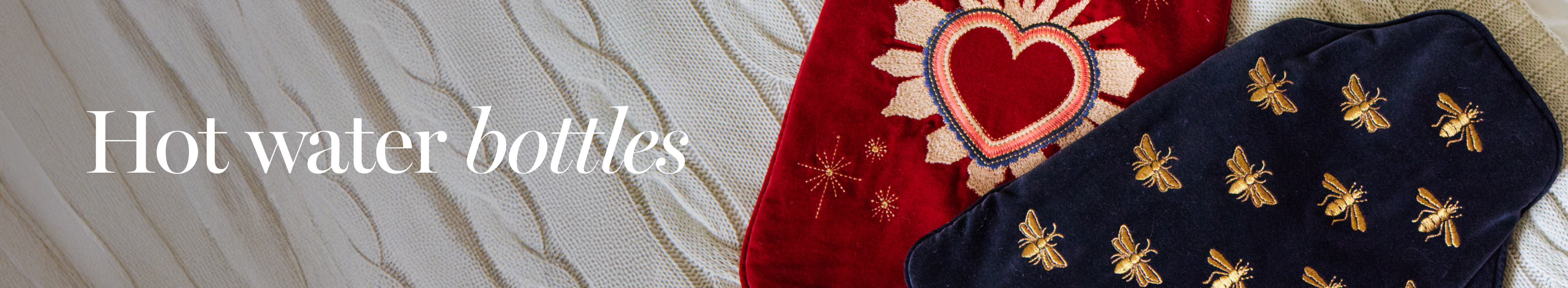 A cosy-season essential, discover our velvet Hot Water Bottles. Embroidered with our signature motifs, they're the ultimate winter warmer and comforting Christmas gift.