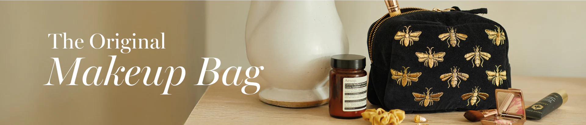 Organise your makeup must-haves with our collection of practical and pretty travel makeup bags in velvet. Whether your routine is simple or several-step, this is the perfect bag to tidy your lip balms, serums and palettes.