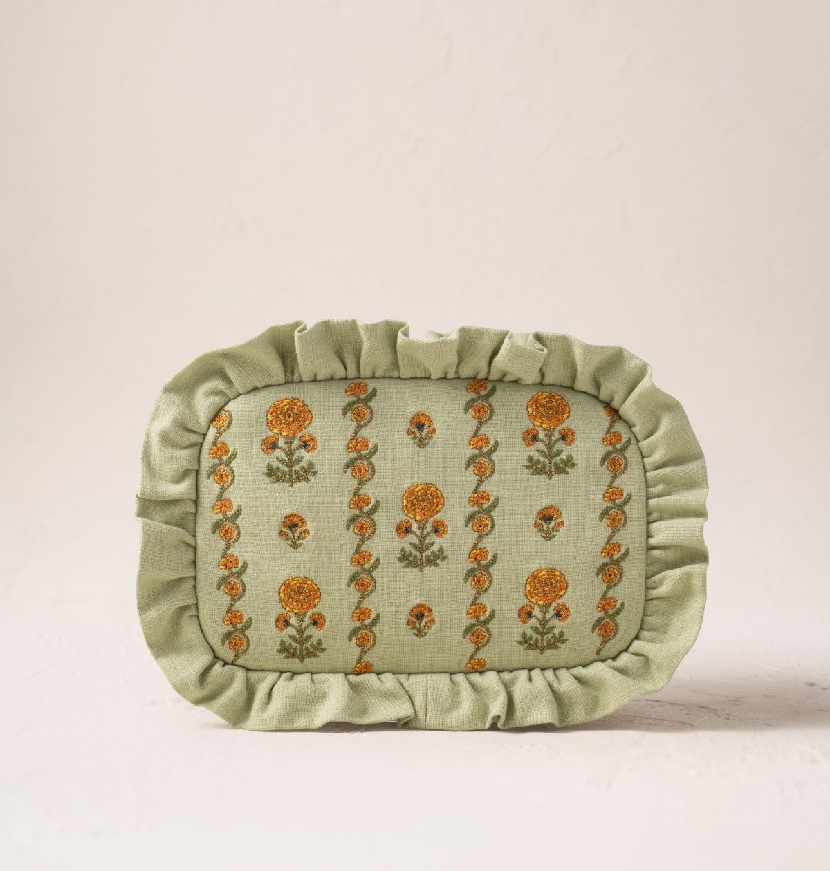 Symbolising light, optimism and growth, these sunny marigolds are perfect for those who set intentions over resolutions. All their details are delicately embroidered in an intricate trellis, ready to brighten beauty organisation or gift with love.