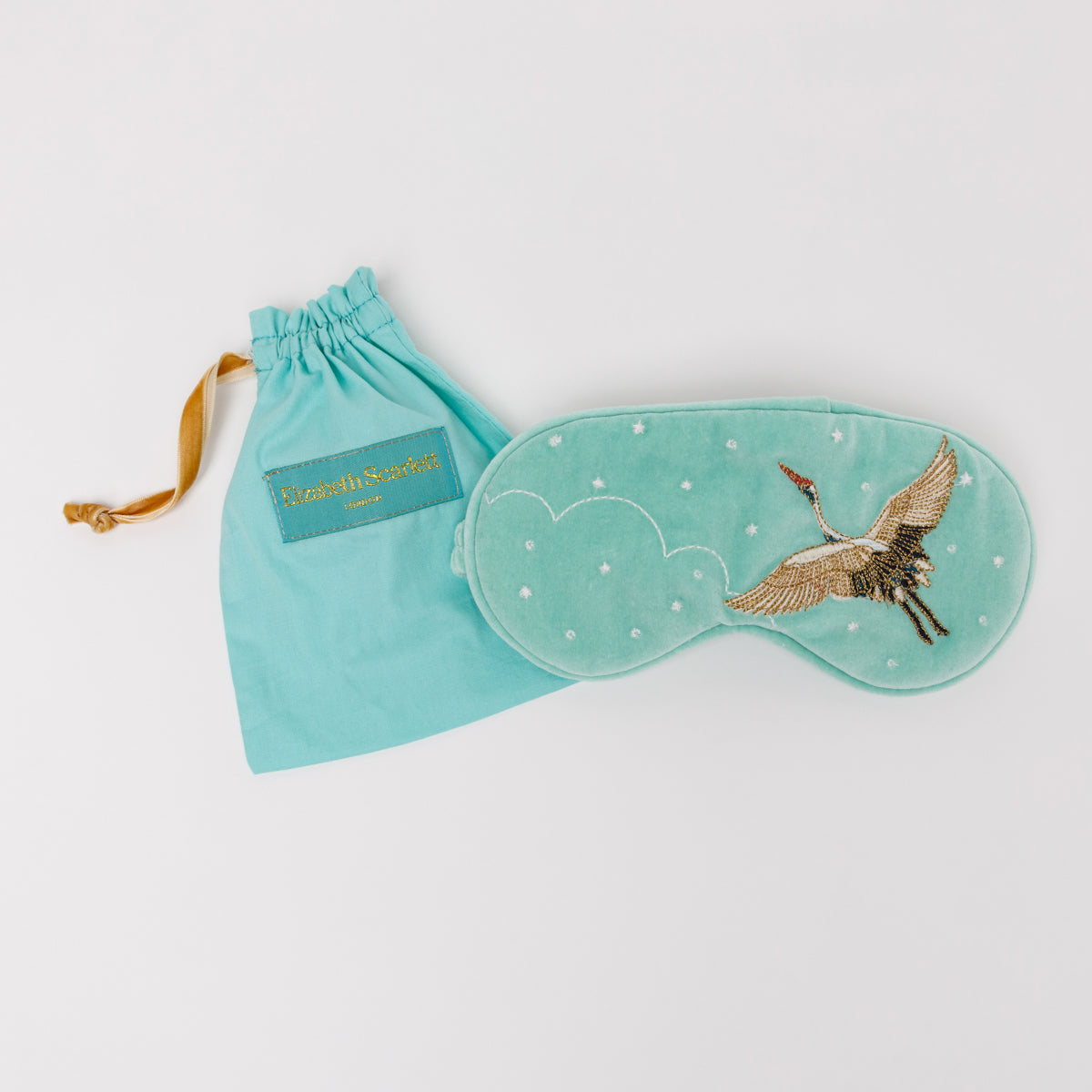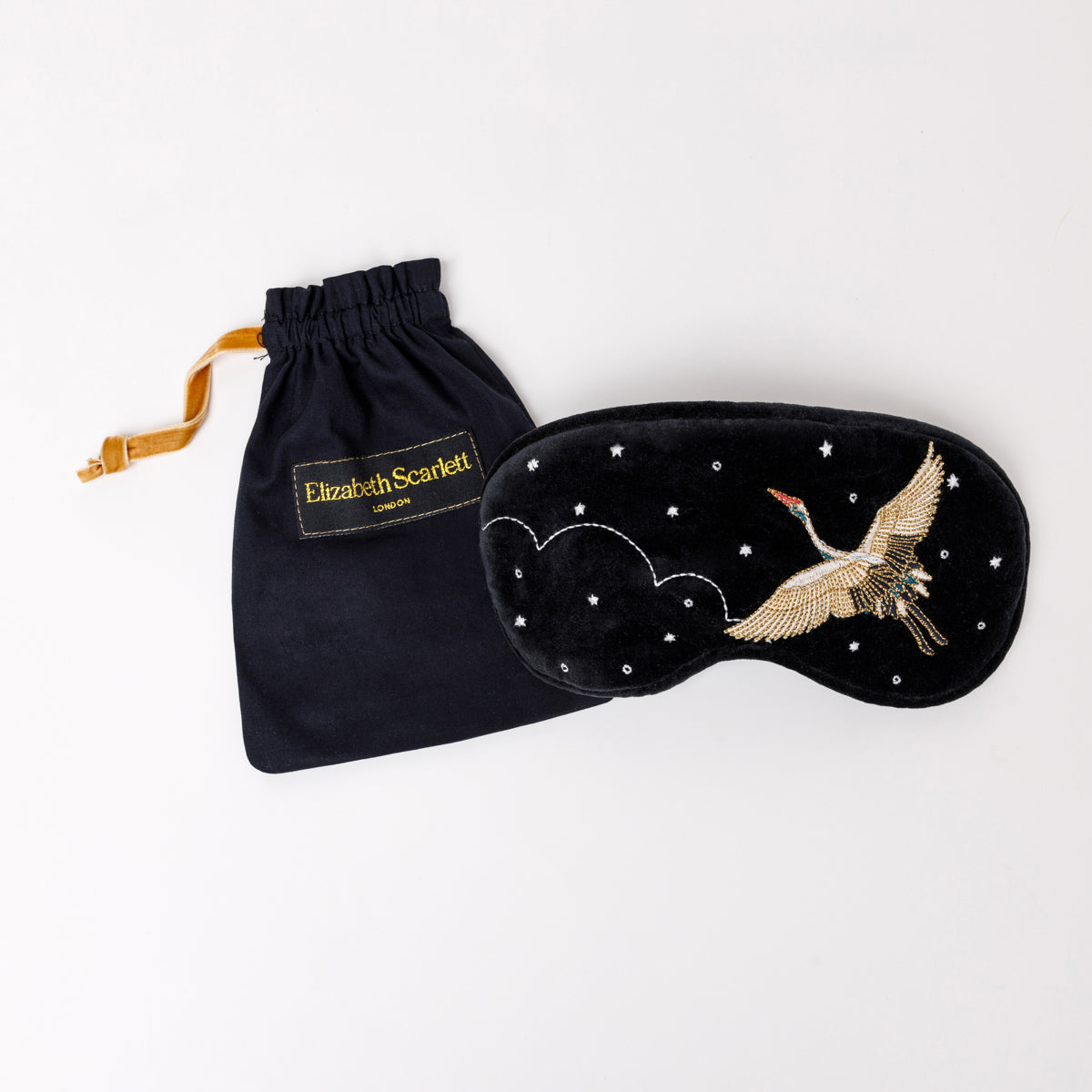 Featuring delicate embroidery onto a luxurious velvet base, this eye mask is filled with sweet lavender to help you drift away into a dreamy night's sleep.