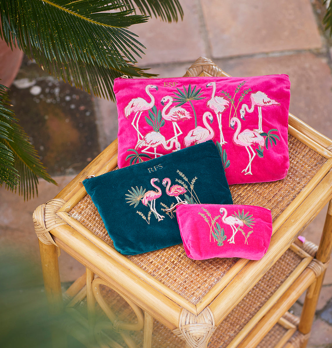 Inspired by serene and statuesque flamingos, this beautiful design is set to become a summer hero. Brought to life with vibrant embroidery and pops of colour, let each piece infuse escapism into your everyday.