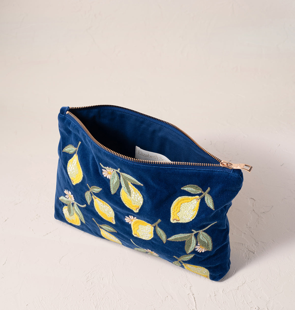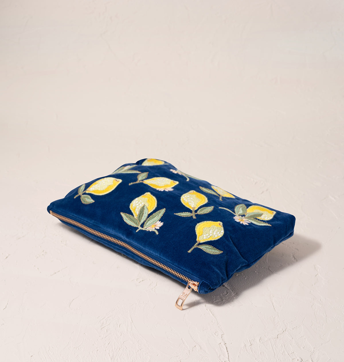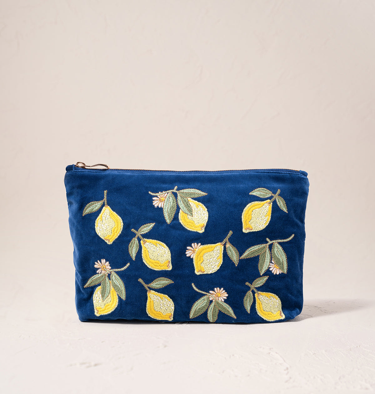 Keep your handbag, beauty and daily essentials perfectly organised with our iconic everyday pouch, or carry it as a clutch for any occasion. Embroidered with our beloved Amalfi-inspired lemon blossom motif for a mood-boosting addition to your accessory lineup - when life gives you lemons: turn them into a beautiful gift!
