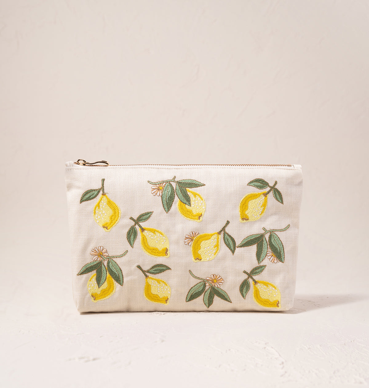 Keep your handbag, beauty and daily essentials perfectly organised with our iconic everyday pouch, or carry it as a clutch for any occasion. Embroidered with our beloved Amalfi-inspired lemon blossom motif for a mood-boosting addition to your accessory lineup - when life gives you lemons: turn them into a beautiful gift!