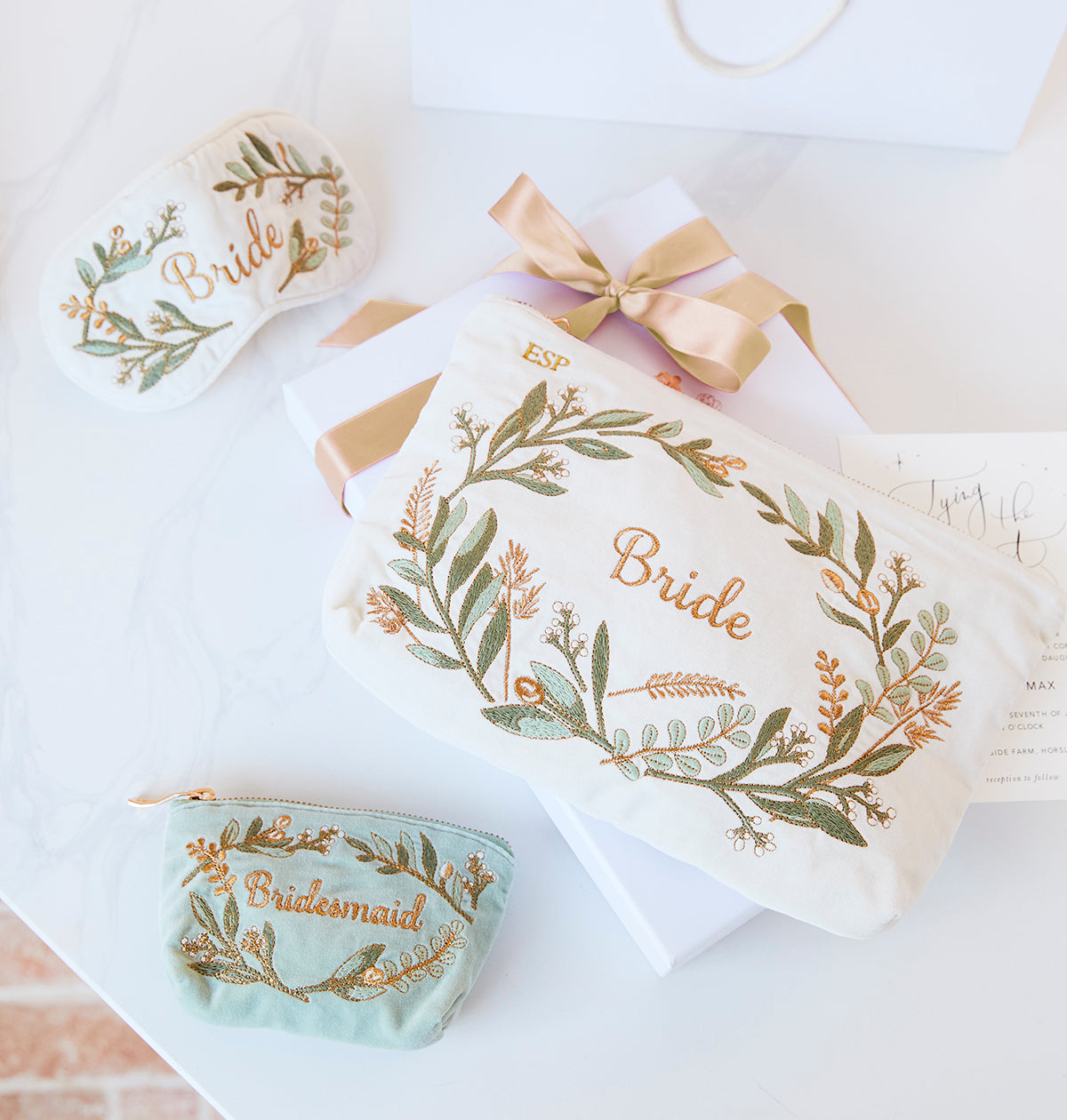 Complete with delicate olive branches and golden sentiments, these pretty Pouches are a gorgeous gift for the bride-to-be. From hen-do to honeymoon these treasured accessories will be by your side during the most memorable moments.