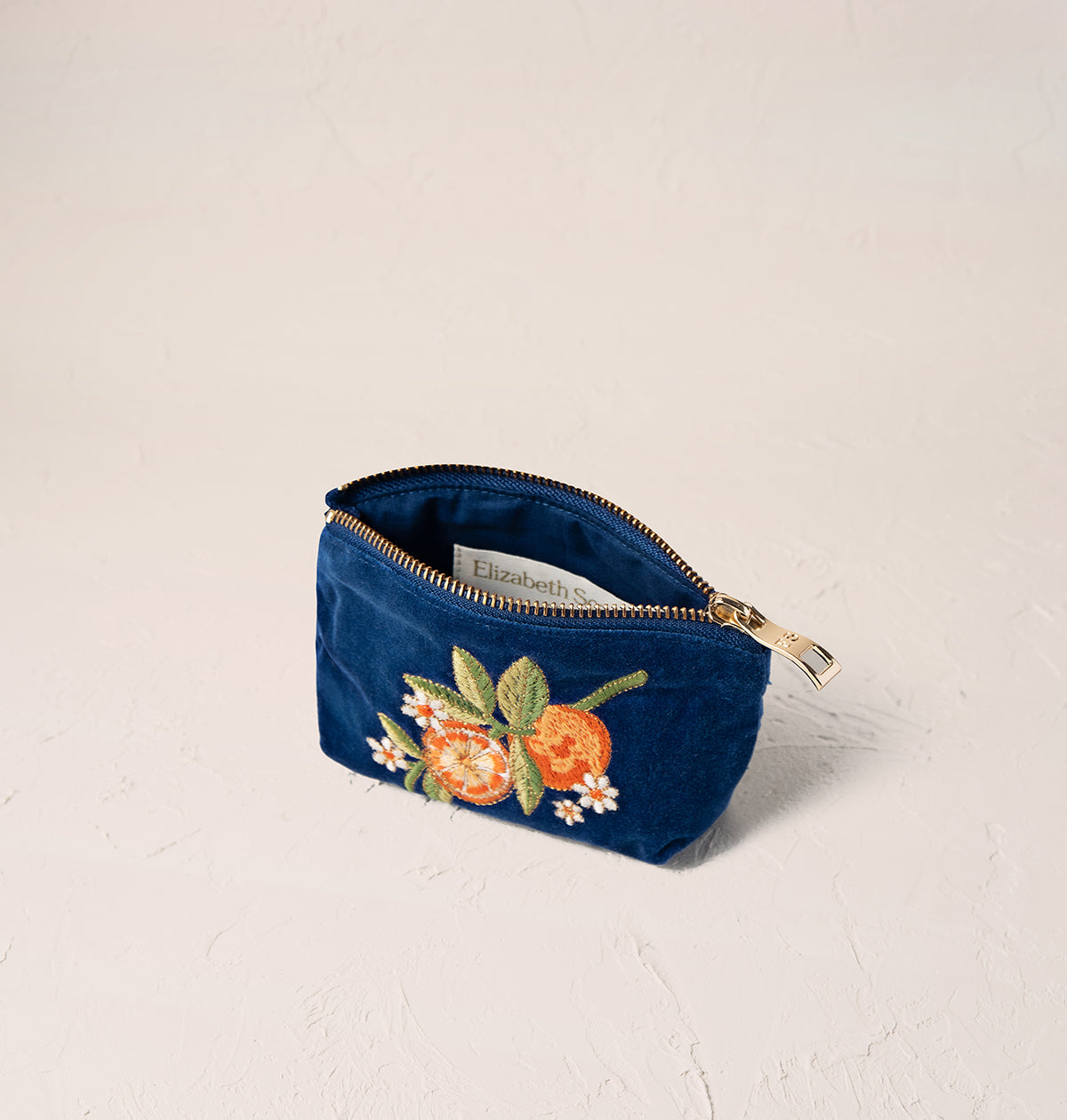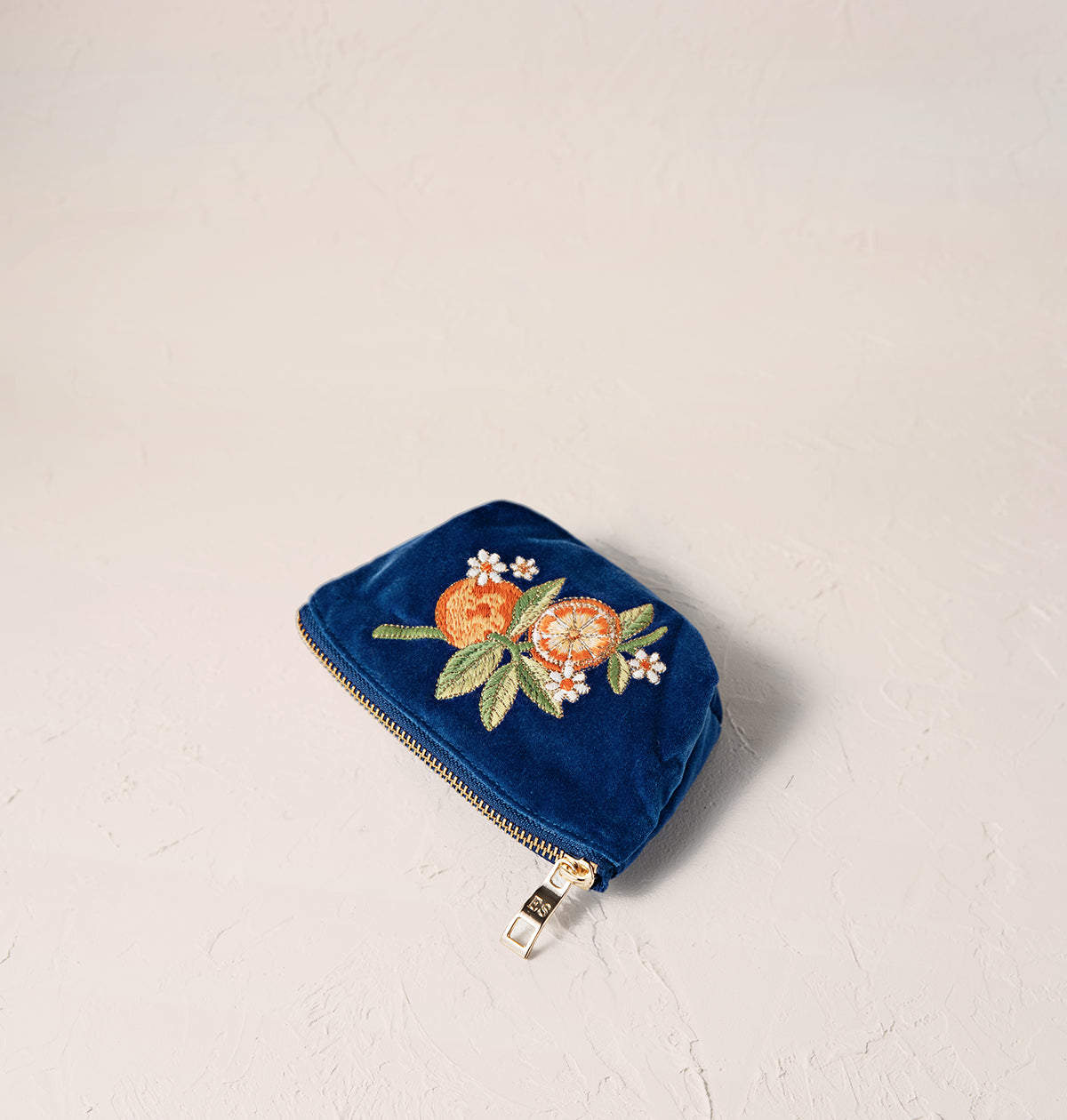 Keep your smaller treasures safe and stylish, with a golden zip that makes paying for your morning coffee a little more joyful. Beautifully embroidered with our mood-boosting orange motif to bring the warmth of the Mediterranean sun to your organisation and everyday adventures.