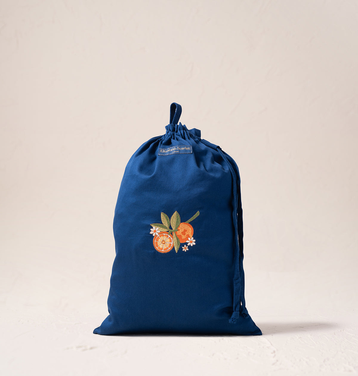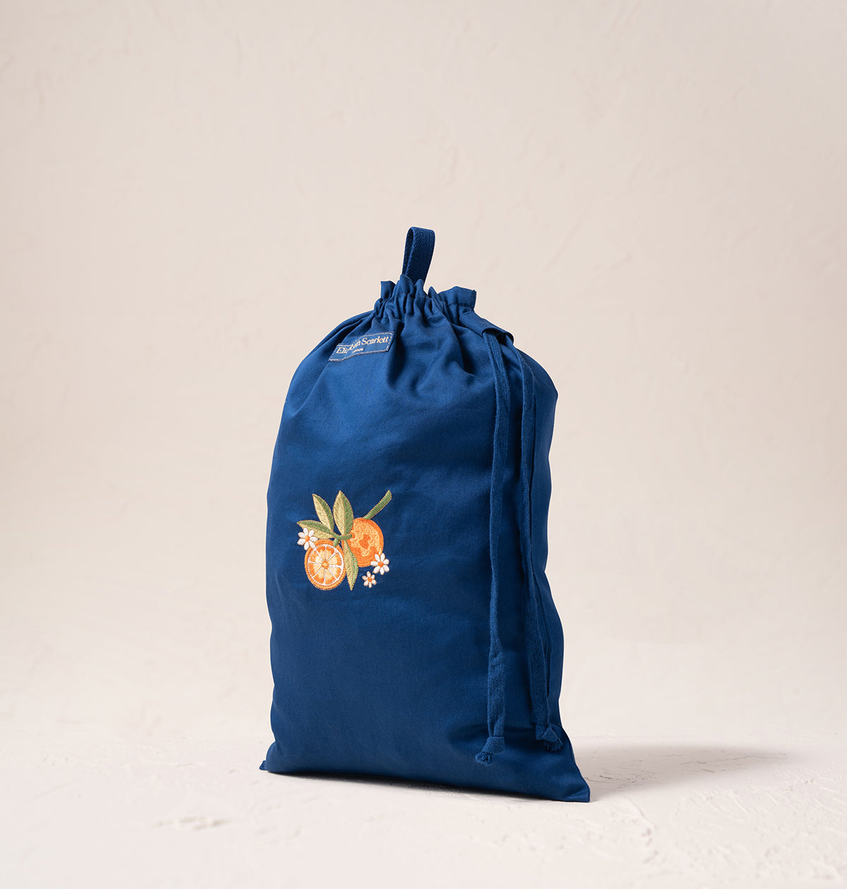 Make post-holiday laundry that little bit easier with this cotton bag, designed with a drawstring closure to keep your clothes safely separated. Beautifully embroidered with our mood-boosting orange motif to bring the warmth of the Mediterranean sun to your organisation and everyday adventures.