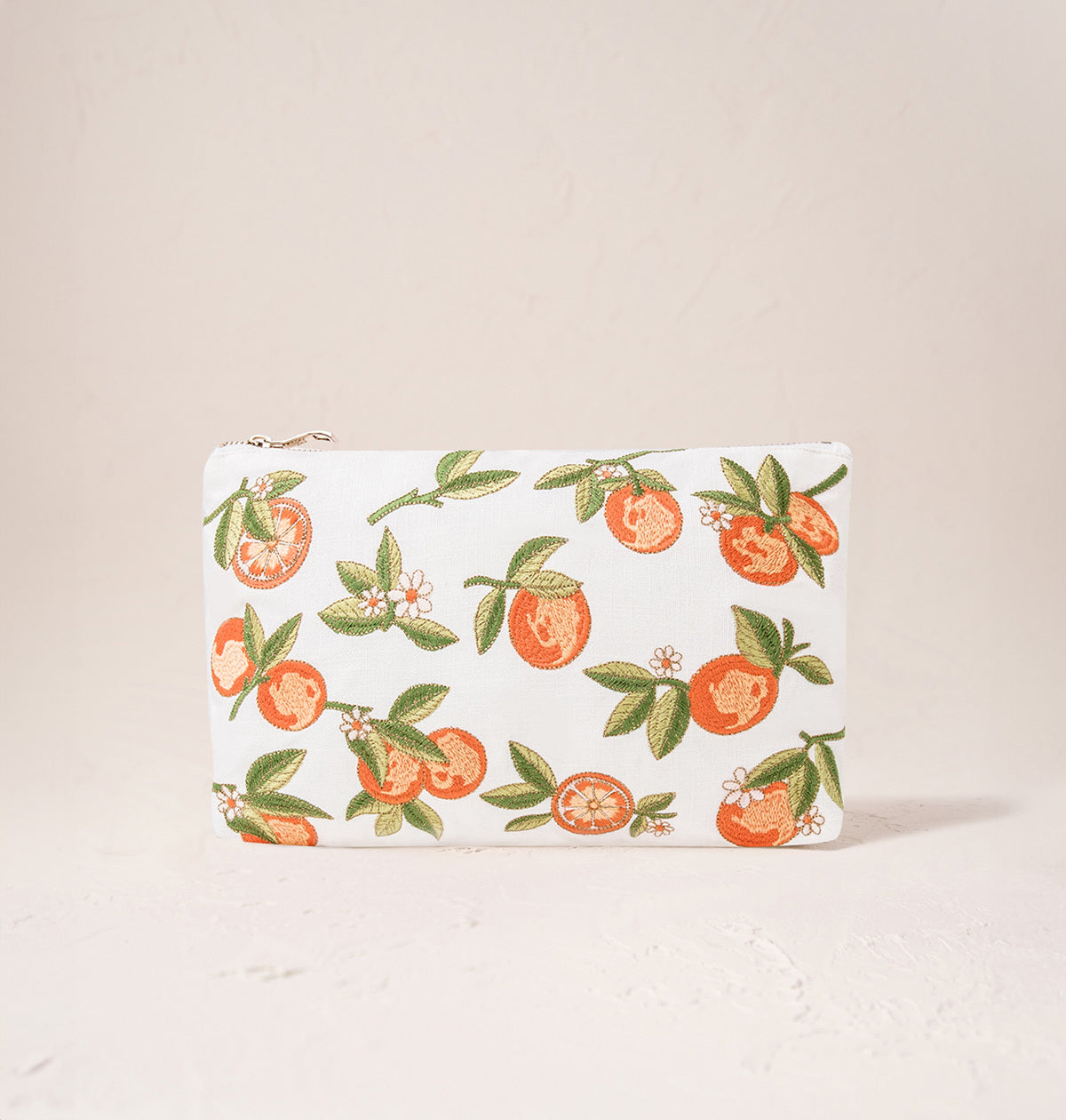 Keep your handbag, beauty and daily essentials perfectly organised with our iconic everyday pouch, or carry it as a clutch for any occasion. Beautifully embroidered with our mood-boosting orange motif to bring the warmth of the Mediterranean sun to your organisation and everyday adventures.