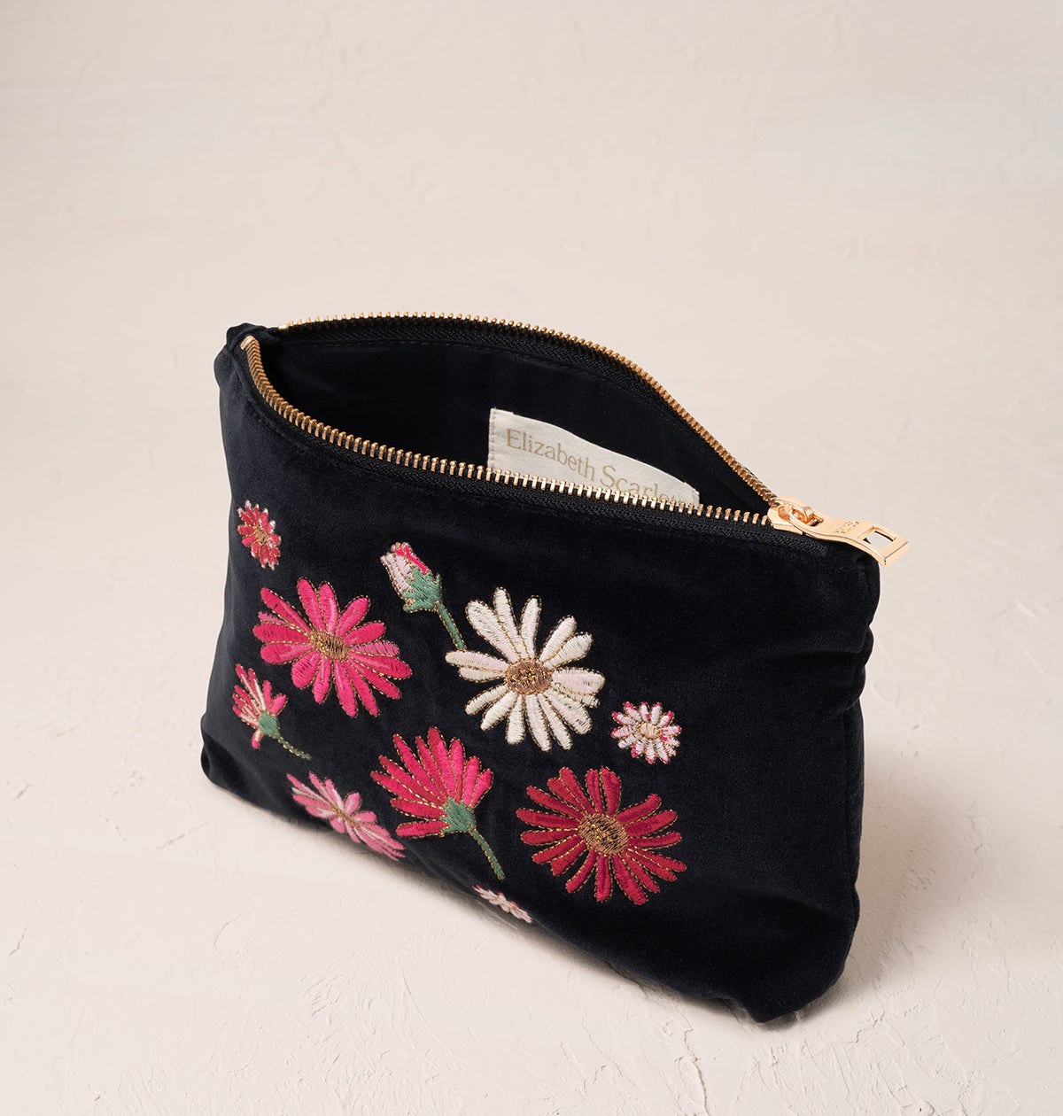 Make life a little more organised and a lot more luxurious with our favourite mini pouch, Ideally-sized to tidy cosmetics, tech essentials and jewellery. Embroidered with scattered posies of yellow, pink and red to celebrate the details of our beautiful British meadows as they burst into bloom.