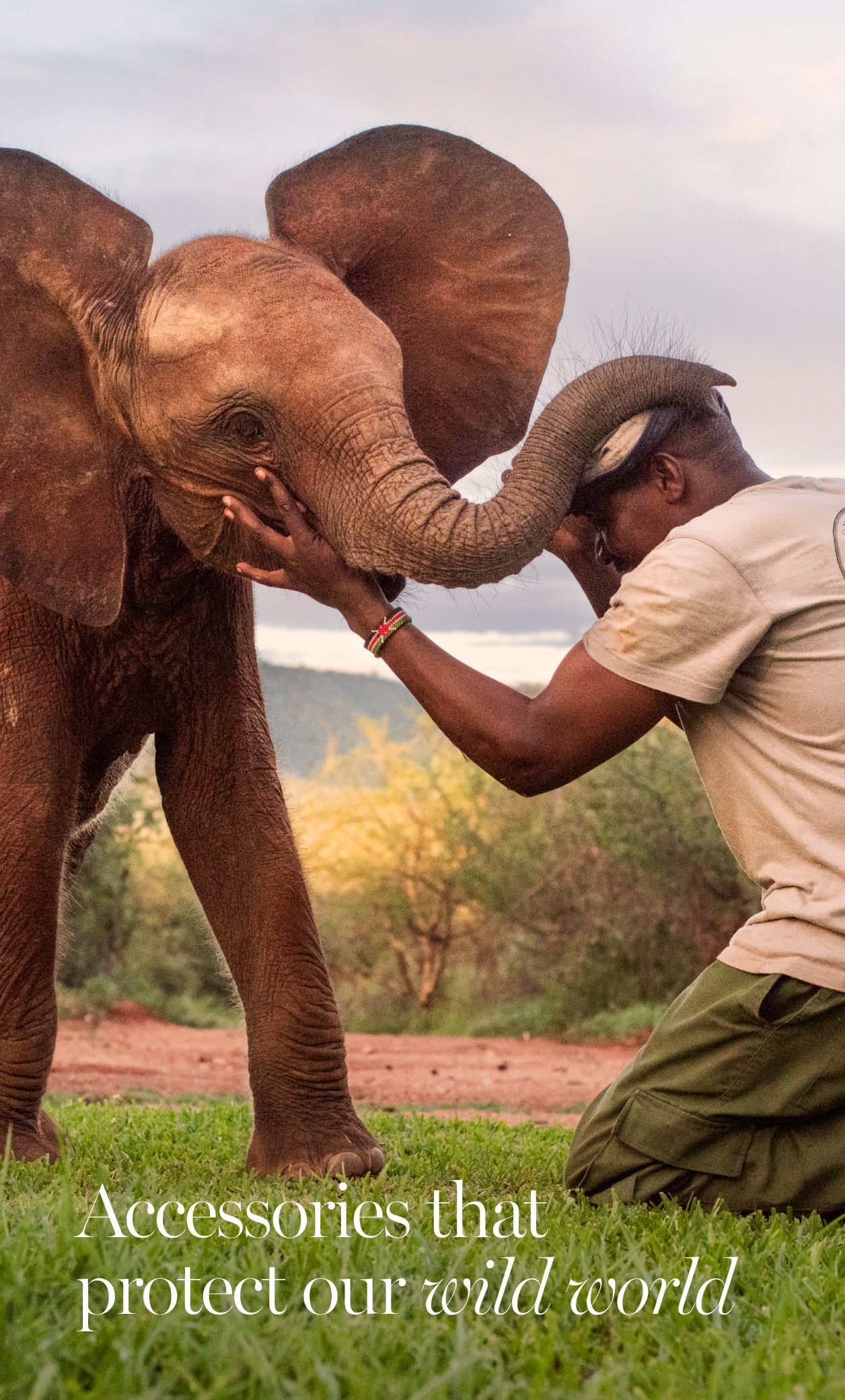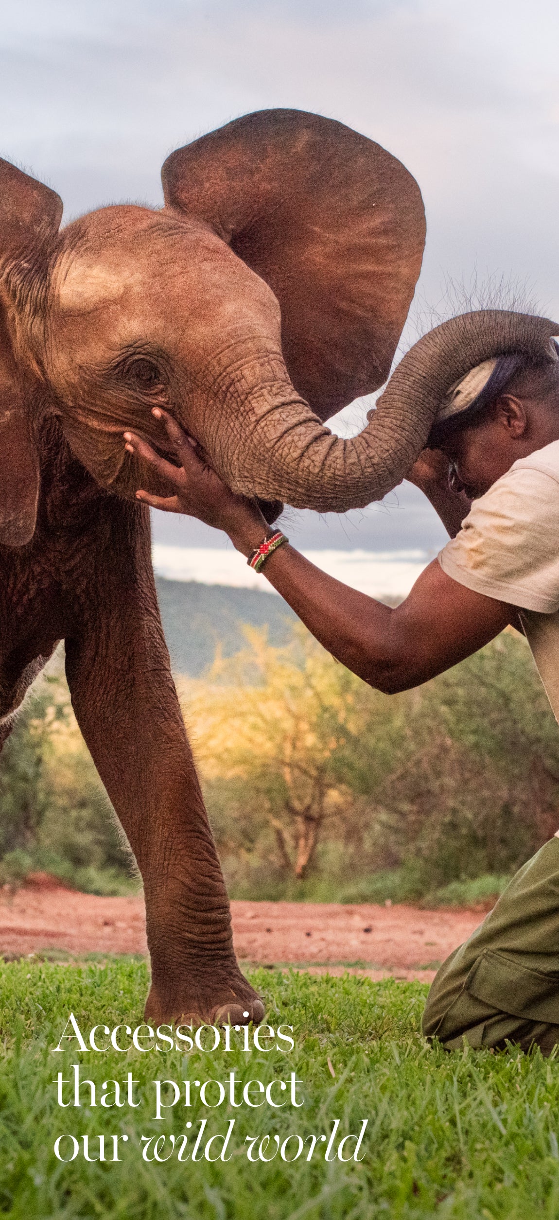 Inspired by Elizabeth’s time visiting the Sheldrick Wildlife Trust in Kenya, and the real- life orphans in their care. Discover accessories that give back to the rehabilitation and help protect this precious species - perfect for those who love elephants.