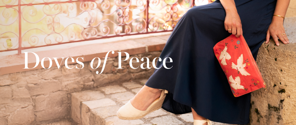 Fluttering peacefully on golden stone, Elizabeth’s has captured the frescoed romance of these traditional Provence doves with soft hues and golden threads - designed to add a touch of artistic joy wherever you wander.