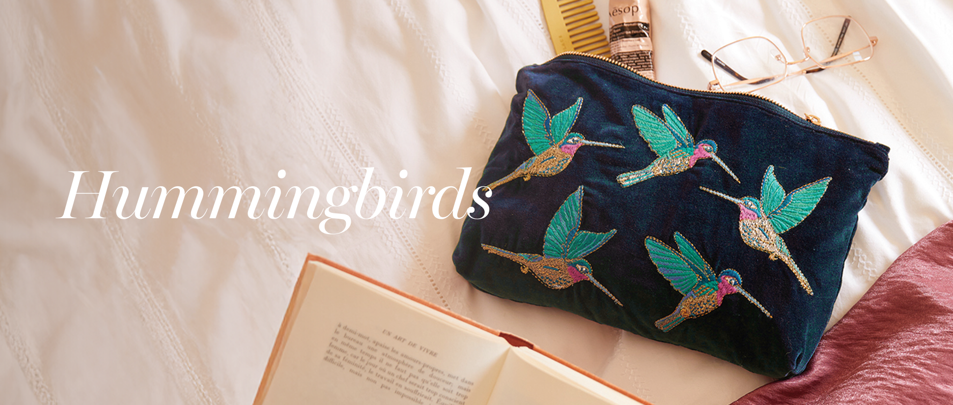 Inspired by the delicate charm of hummingbirds, this design celebrates their elegance and grace. Explore timeless silhouettes, from versatile everyday pouches to practical wash bags - a must-have for any wildlife-lover.