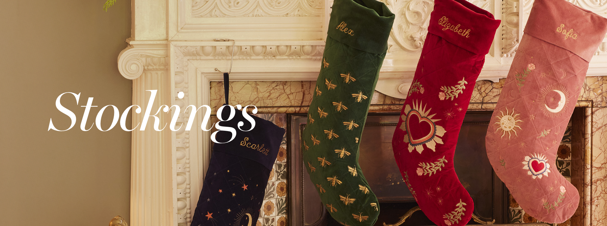 From festive decorating to Christmas morning, our new velvet stockings make the ultimate luxurious addition. With a limited few available in our most-loved motifs, personalize with their full name (or yours) in shimmering gold threads to create th...read more