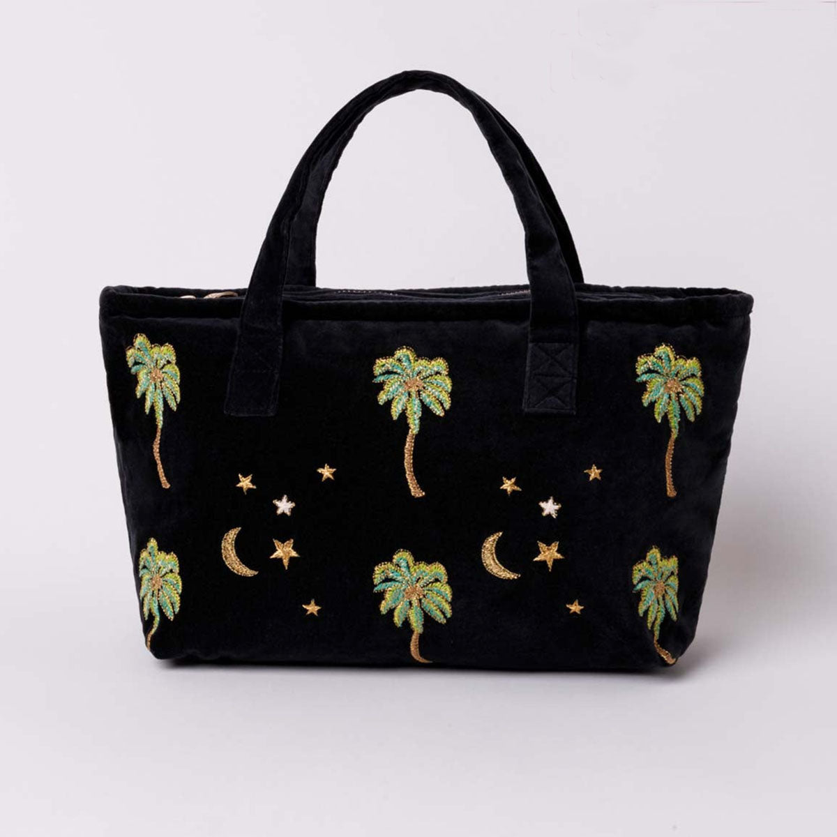 This Day Bag features delicate embroidery on a luxurious velvet base. Capturing all the details with gold accents, it is ideally sized to hold all of your essentials for a day in town.