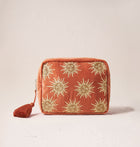 Elizabeth's hand-drawn sun motif is emblazoned onto a rich base, with intricately embroidered gold and vanilla threads. She has depicted the sun with a human-like face, imagining our most powerful star as a character who radiates warmth and life.