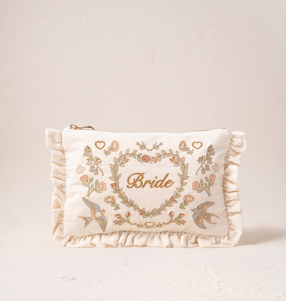 Perfect for the bride-to-be with a romantic nature, this pouch features springtime hearts, swallows and blooms. Ideal to organise her essentials for the big day, it also doubles as a clutch for her evening look or town hall ceremony.