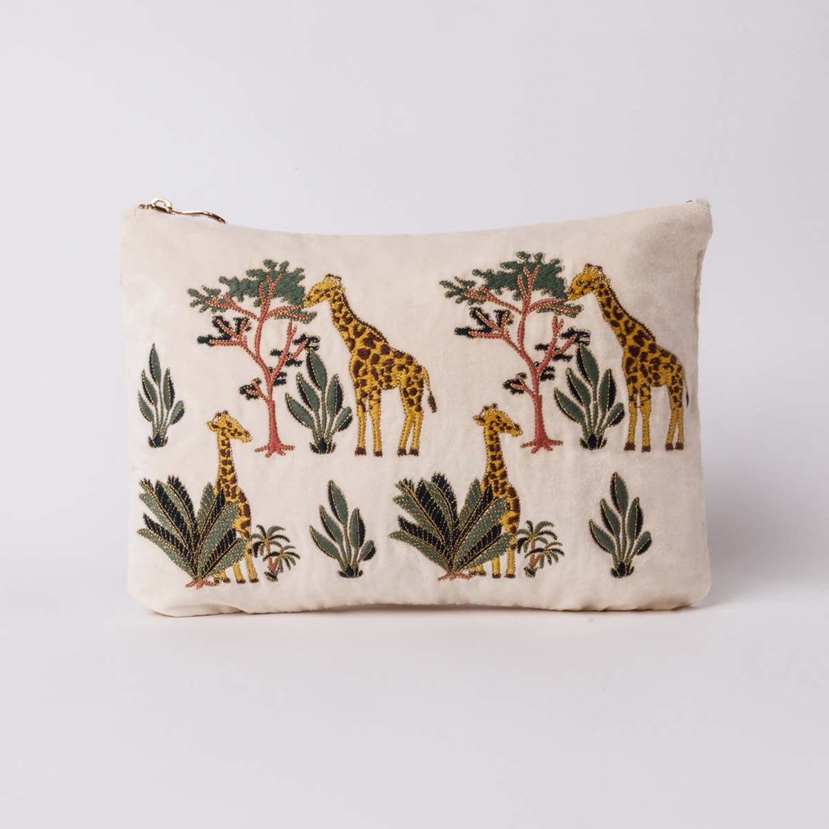 This vibrant and detailed design was inspired by the elegant, long-legged creatures that Elizabeth saw grazing on the plains of Kenya during her honeymoon safari. The design details the creature's unique pattern, and majestic form, along with the leafy green habitat amongst which they graze.