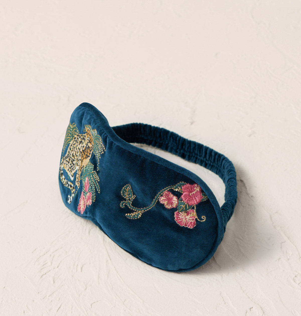 Drift off with ease, thanks to our fully-light blocking eye mask, filled with sweet lavender to aid the deepest sleep. Embroidered with two majestic jaguars surrounded by luscious rainforest, brought to life with pops of pink, vivid hues and delicate gold threads.