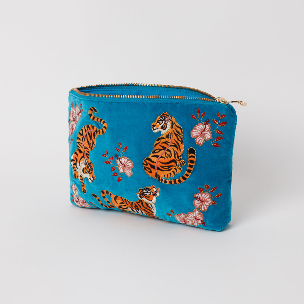 Illustrated in gold embroidery onto a rich apricot or azure blue velvet base, this Pouch is the perfect accessory to make your life a little more organised and a lot more luxurious. Ideally sized, this pouch is perfect for storing your daily essentials, ideally sized to fit in your handbag or to use as a clutch.