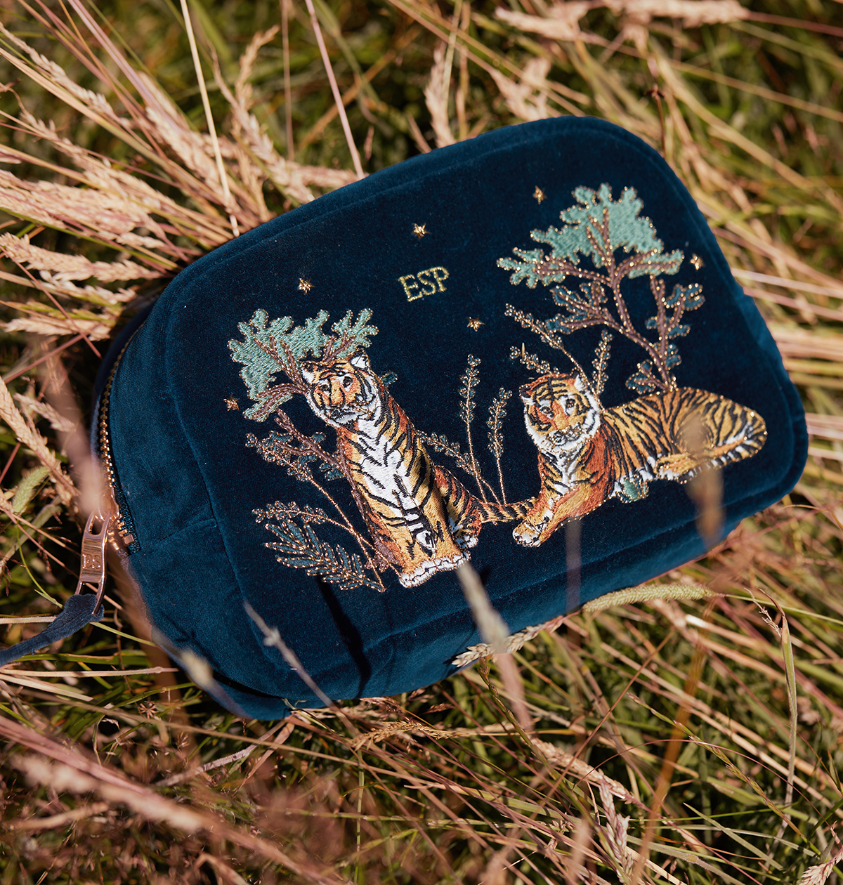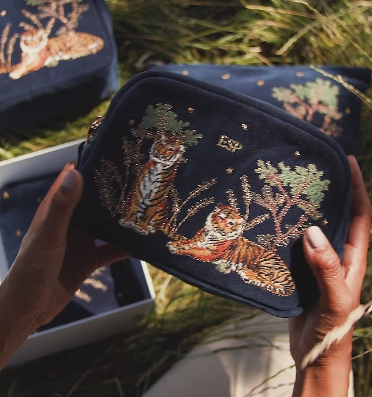 Bold and beautiful, our tiger collection honours and protects one of the most majestic big cats in Rajasthan, India, the tiger. With intricate golden threads set against a statement ink blue base, this design promises to bring a touch of the wild to your everyday.